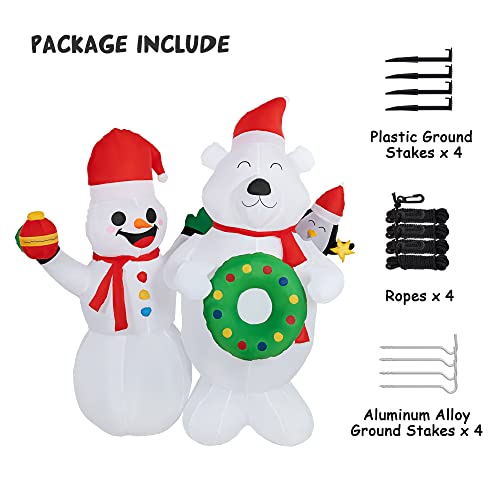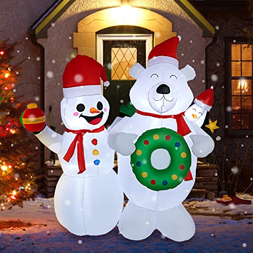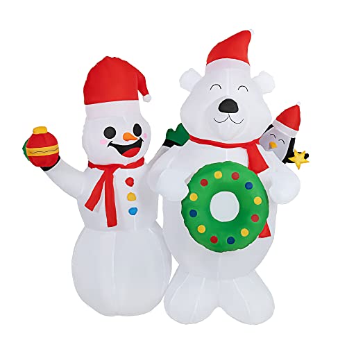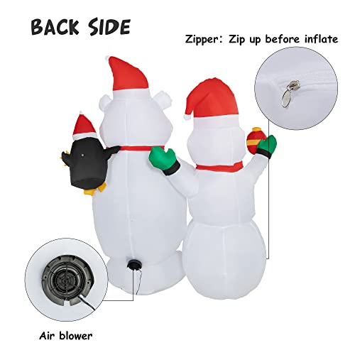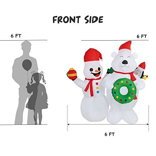 6 FT Christmas Inflatables Decoration Lighted Blow up Polar Bear w/ Snowman Built-in LED