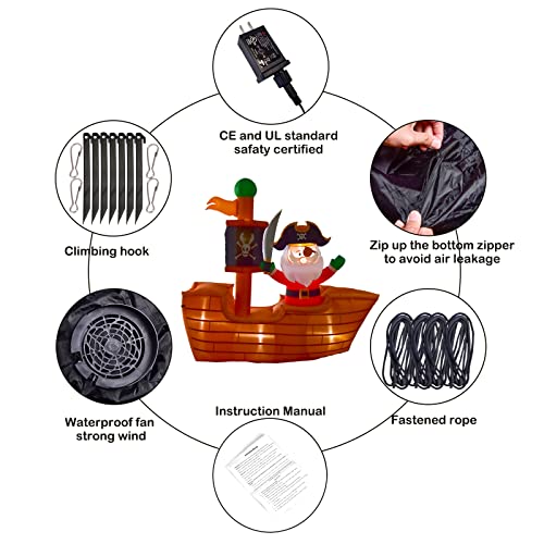 - 🎅 [Fun and Cute Design] The Sea Santa features 1 Sea Santa Claus and 1 Pirate Ship measuring 6’ Feet in Height. This amusing seasonal design comes with the Santa Claus you know and love on a larger-than-life Pirate Ship! Fare the seas in seasonal style with these Christmas inflatables which include Santa with an Eyepatch, Saber on a classic Ship flying the Pirate Flag.