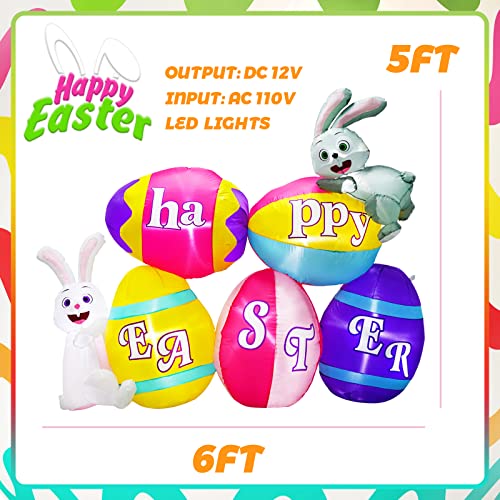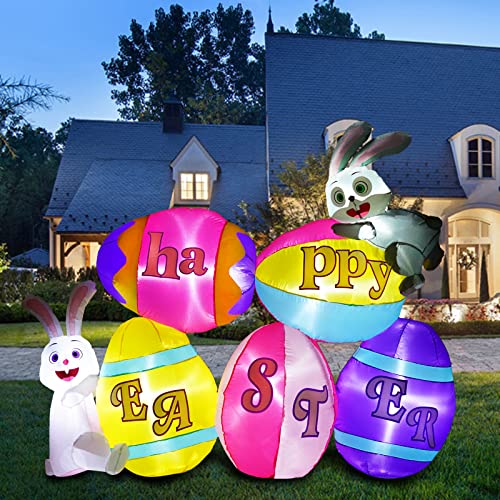 - Decoration for Easter: This inflatable bunny eggs decor is suitable for a holiday party, great item for children. It will come fully assembled and ready to plug it in to inflate. LEDs light up and it inflates in minutes Lighted up at night, creates a cheerful festive holiday atmosphere.