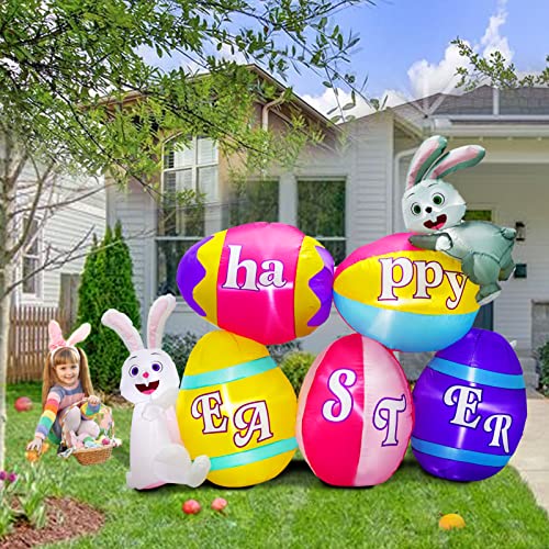 6 Ft Easter Inflatable Bunny w/ Happy Easter Eggs Lighted Decor