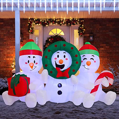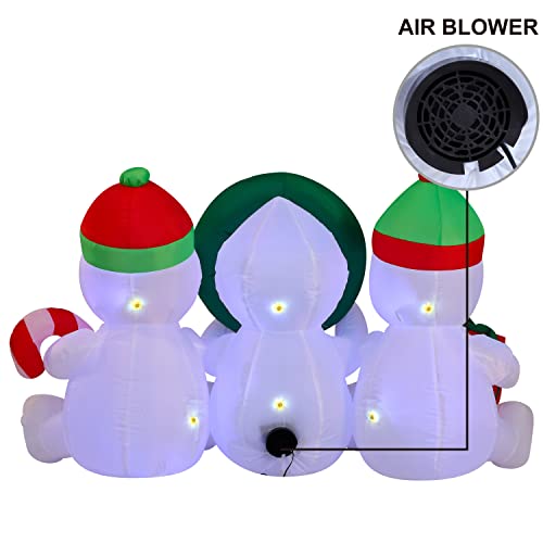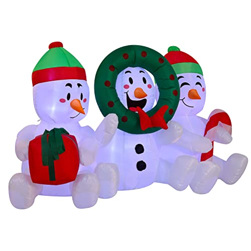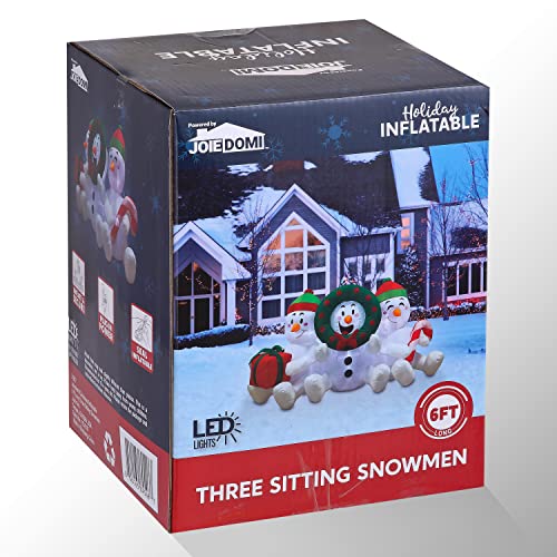 6 FT Long Inflatable Three Sitting Snowman Christmas Decoration w/ Build-in LEDs