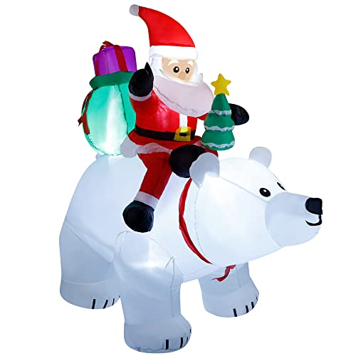 6 Ft Santa Claus with Polar Bear and Christmas Tree Build-in LED Lights Blow up Inflatables