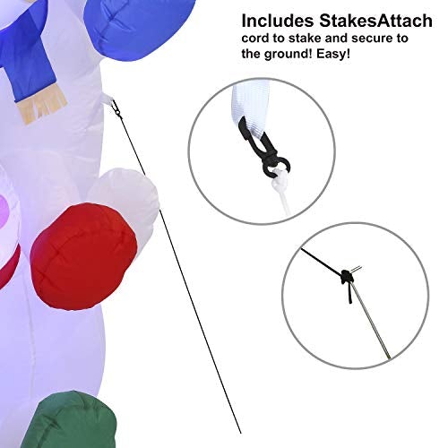 - 6 Feet Tall Snowman Inflatable comes with an extended cord, ground stakes, fastened ropes, built-in sandbags, and a plug with UL certification.