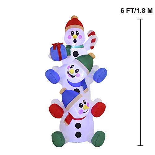 6 FT Snowman Inflatable w/ Build-in LEDs Inflatables Christmas Decoration