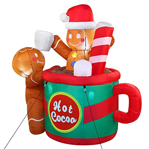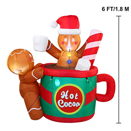 6 FT Tall Gingerbread Man in Hot Cocoa Mug Inflatable w/ Build-in LEDs