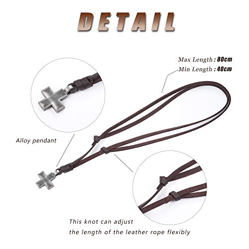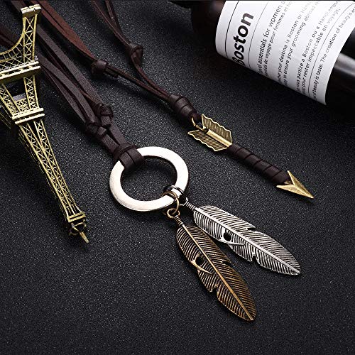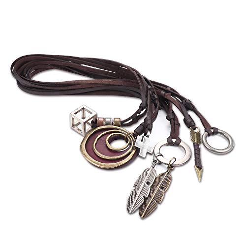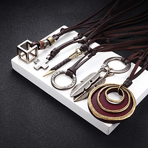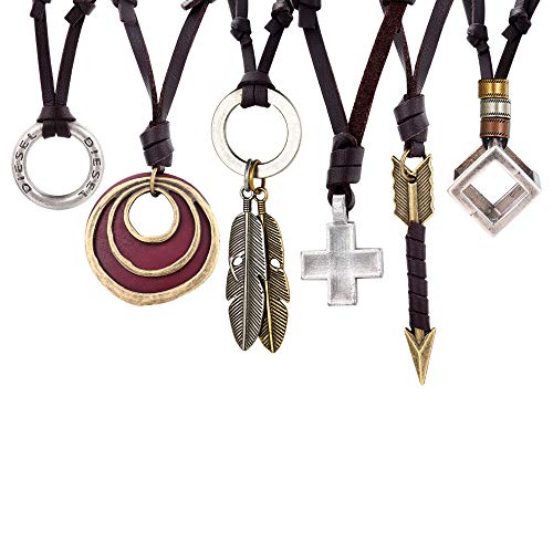- 💎VINTAGE LEATHER NECKLACE💎One order includes 6 pcs vintage leather pendant necklaces, elaborate collocation 6 different pendants:ring pendant leather necklace,feather pendant necklace,cross pendant necklace,and arrow necklace. Economical and affordable, unique vintage brown silver tone, classic and stylish, give you a charming look and win more compliment.