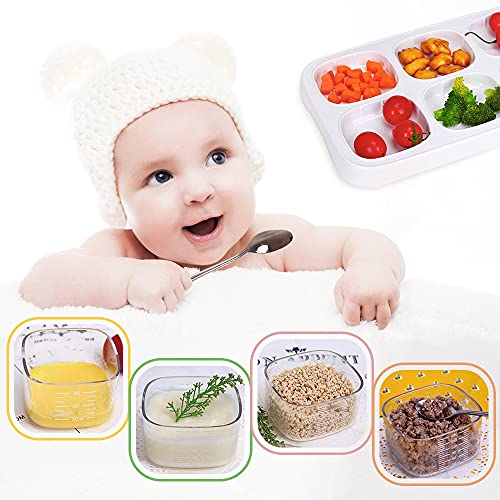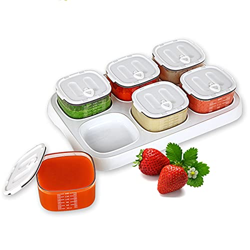 - Small and multifunctional baby food jars , 6pcs baby food jars can contain 6 kinds of different foods. This baby food containers alway can hold all types of food, from milk powder to milk liquids, including powdered formula, cereal, soup, purees, veggies, fruits, breast milk, yogurt, meat, herbs, juices, snacks, and more. You can use the jars to put different foods for your kids.