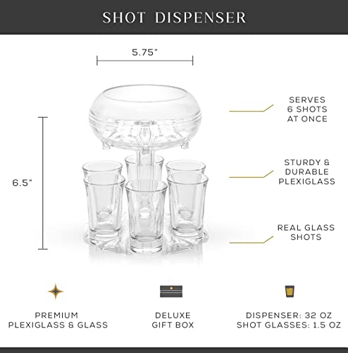6 Shot Glass Dispenser & Shot Glasses Set, 32oz Liquor Dispenser