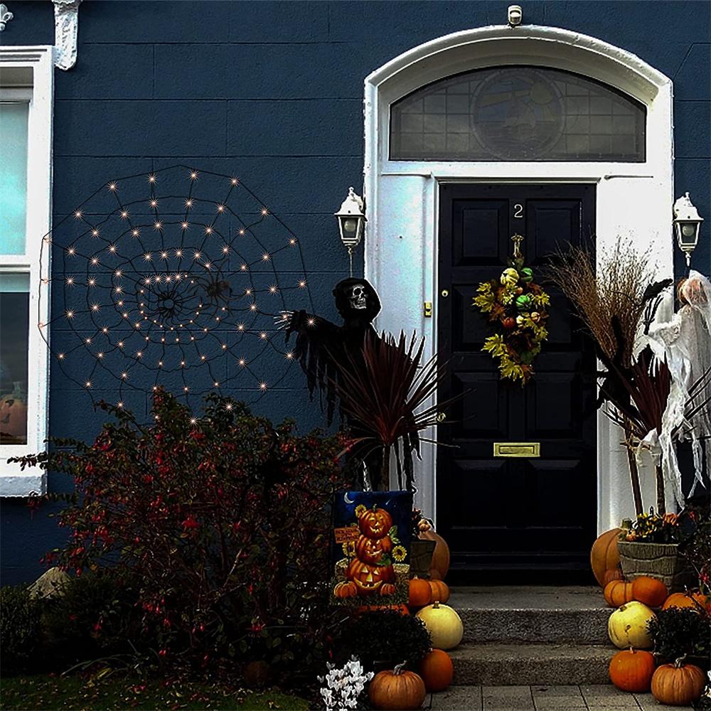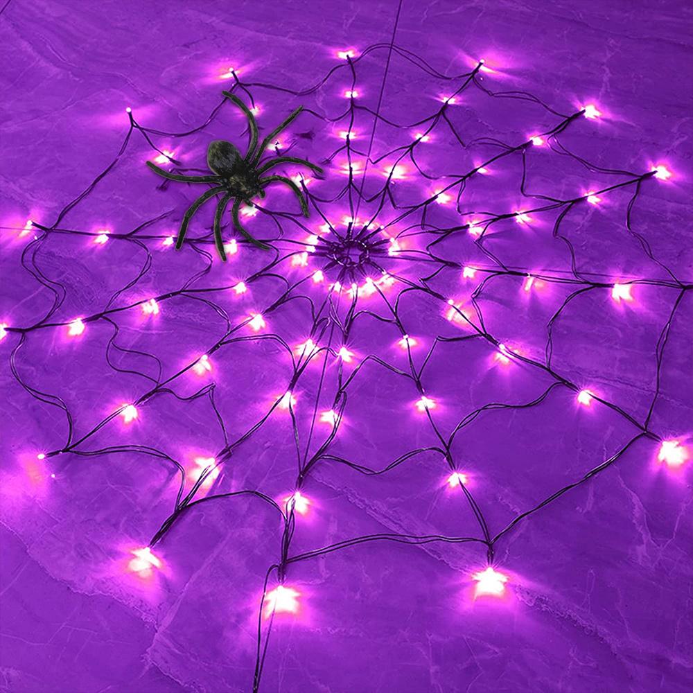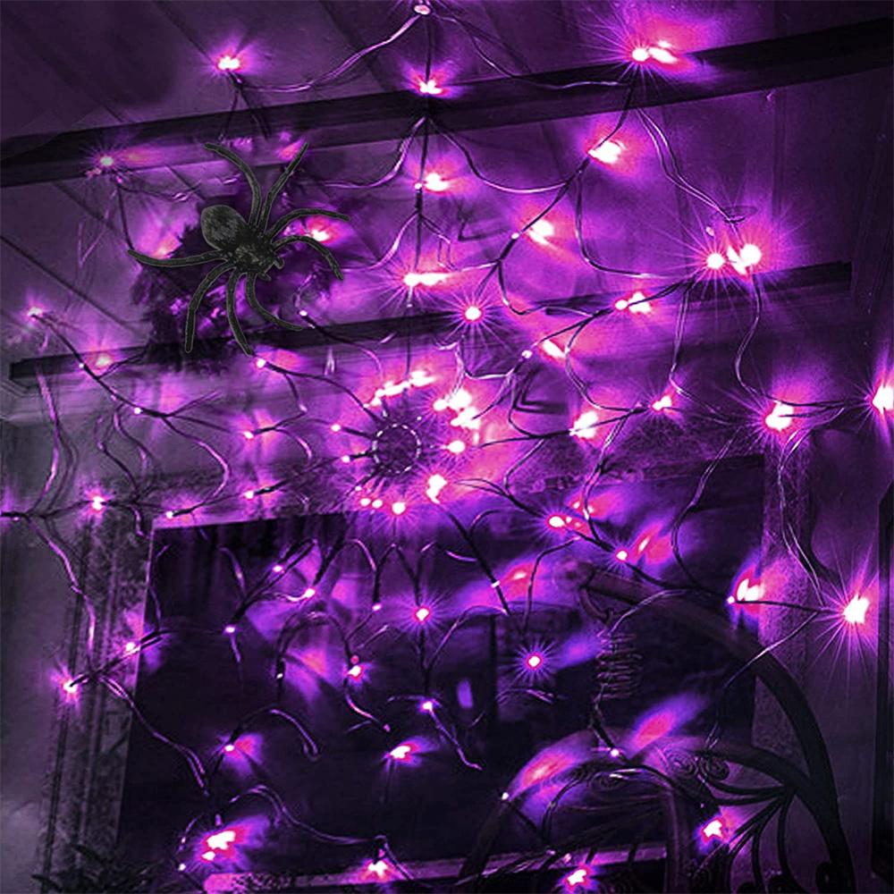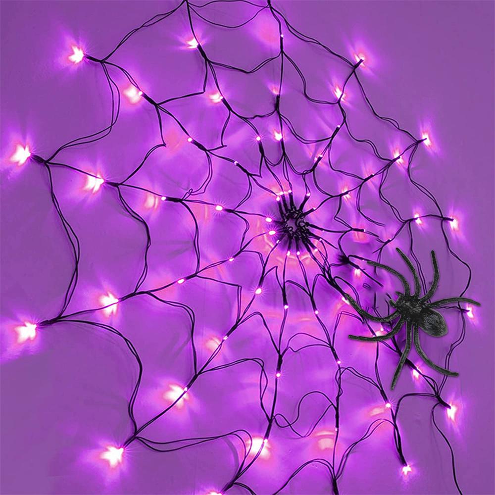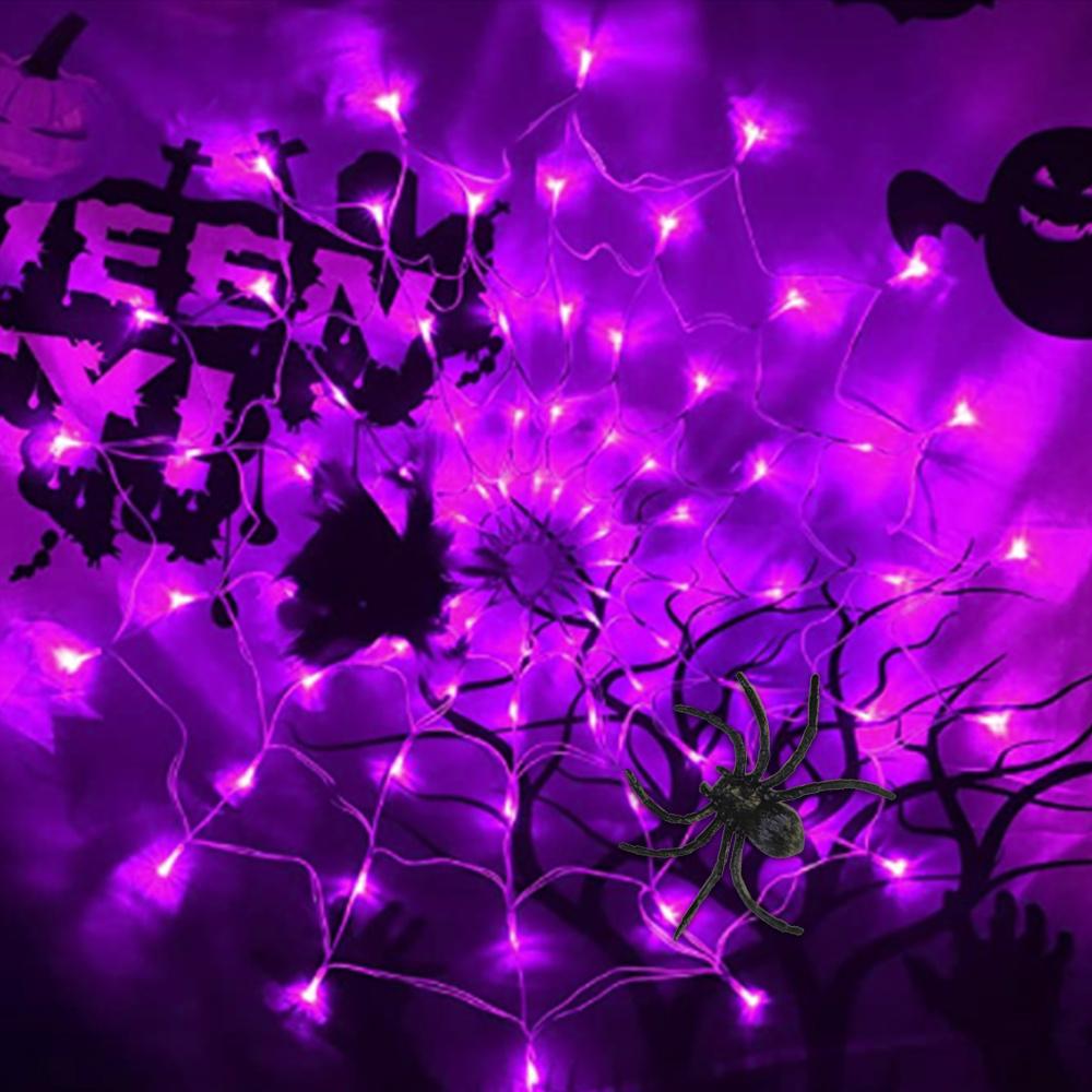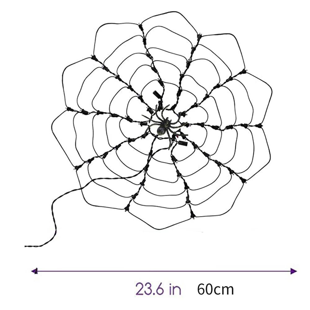 Specification: Material: Acrylic Size: 60*60cm Light: 60 lights Spider size: about 8cm Color: purple/orange Power supply mode: 3 AA batteries (not included) Package: Light string*1 Spider*1 (8cm) *- Classic Halloween black spider web, with 60 lights, the size is 23.6 inches (about 60 cm), when hanging it, it is big enough. *- Very suitable for decorating your home, attract and surprise neighbors with spider web lights! *- Can withstand rain and water droplets. It has a safe low voltage and will stay cool after long-term use. No need to worry about using it outdoors. *- 8 White sticky hooks are allowed to hang on walls, windows and doors. It can also be used as a background/curtain, garden/courtyard, lawn, porch, balcony and terrace decoration, it can be removed at will, creating a terrible atmosphere. *- Decorate your walls, courtyards, hedges and fences, porches and terraces. It is very suitable for Halloween theme parties, masquerades, makeup parties, bars and horror houses.