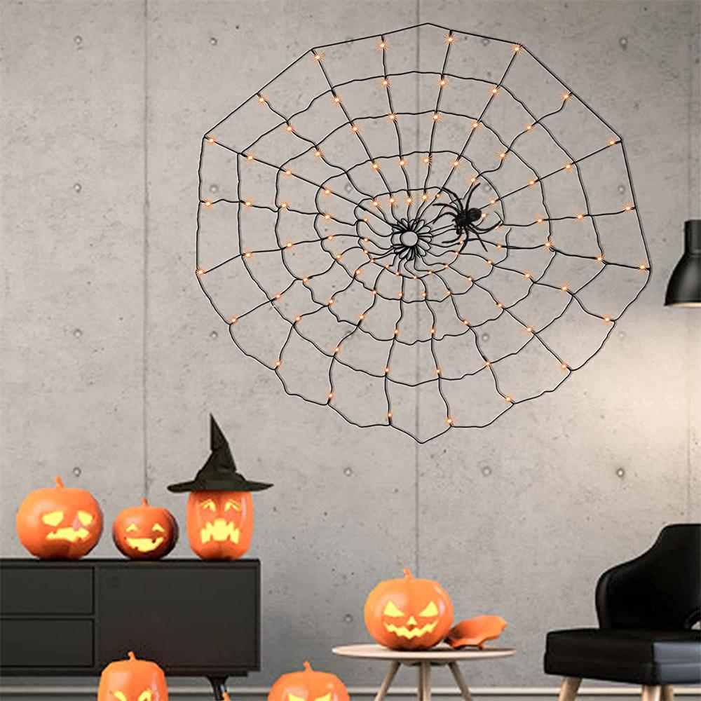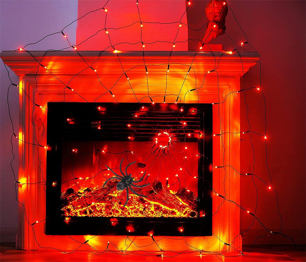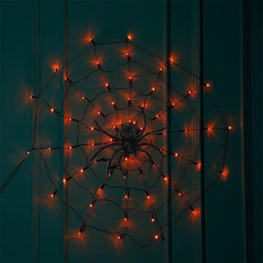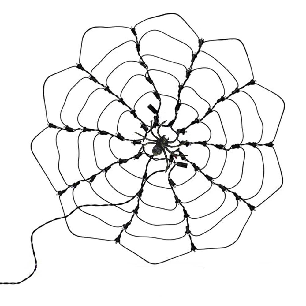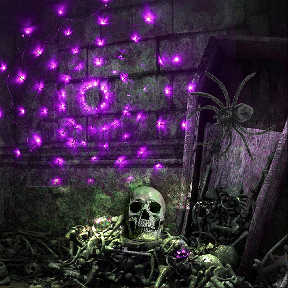 60 LED Halloween Spider Net Web String Lights w/ Black Spider