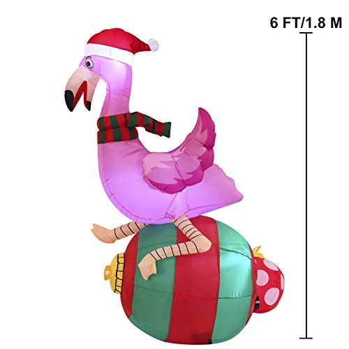 - 6 Feet Tall Outdoor Holiday Flamingo on OrnamentInflatable comes with an extended cord, ground stakes, fastened ropes, built-in sandbags, and a plug with UL certification.