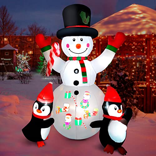 6FT Christmas Inflatables Snowman & Penguins w/ Colorful Rotating Lights