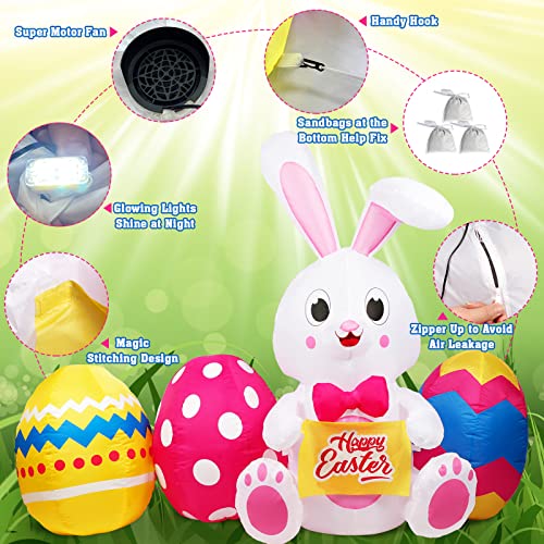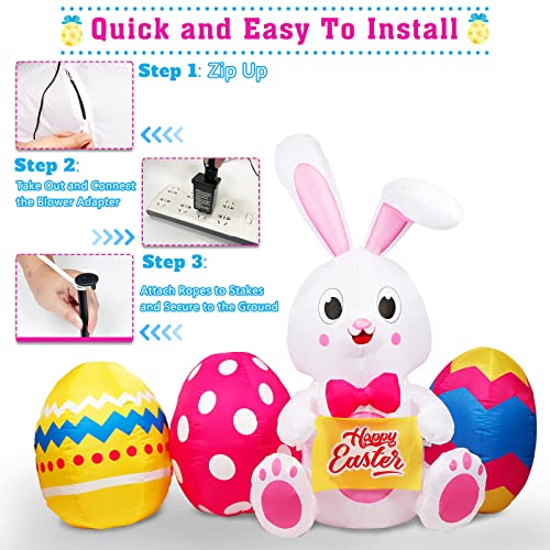 6FT Easter Inflatables Decorations, Happy Easter Bunny & Eggs w/ 5 LEDs