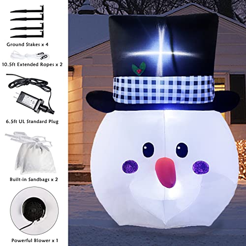 6ft Inflatable Snowman Head w/ Built-in LED Lights, Large Christmas Decoration