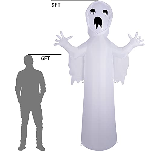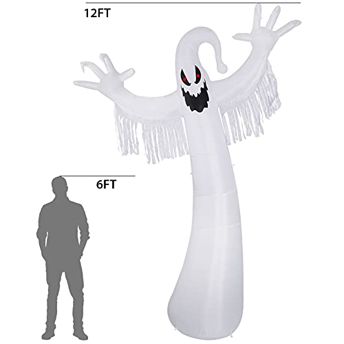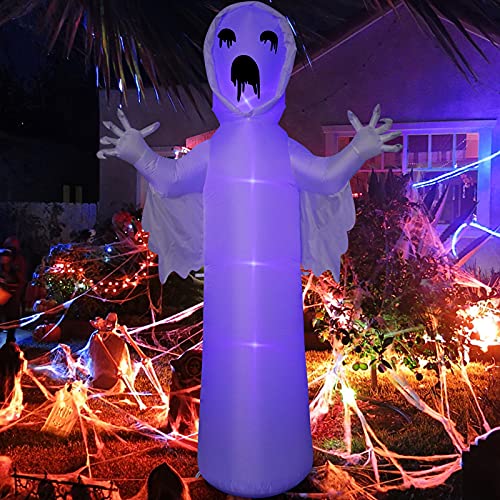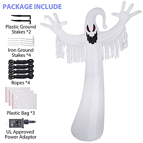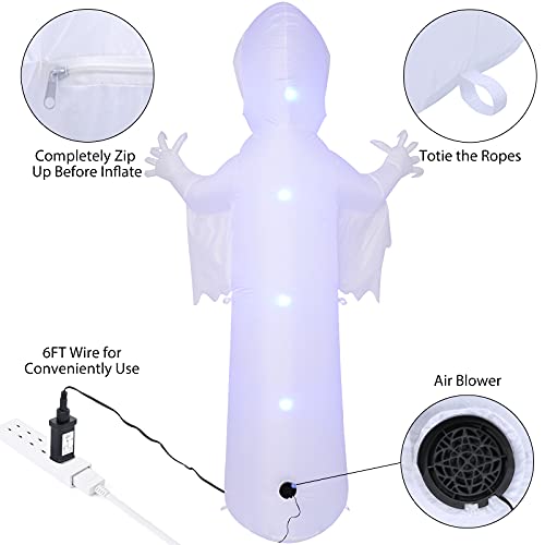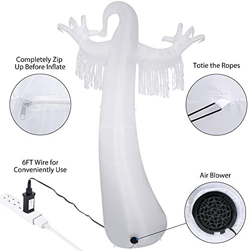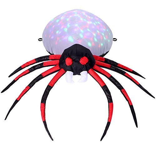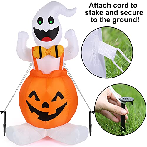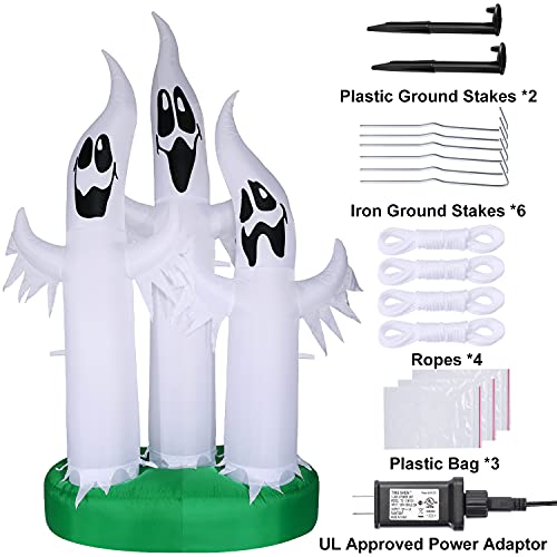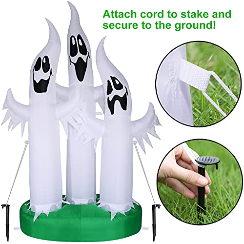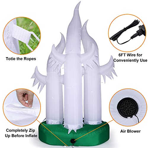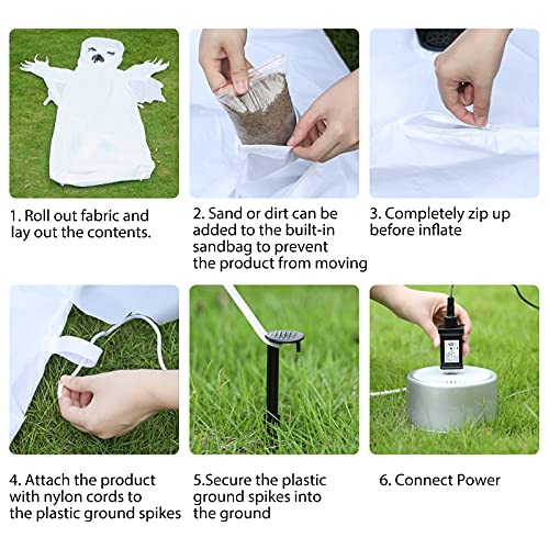 - Halloween Inflatable Decoration comes with 2 iron ground stakes, 2 ropes, and built in sandbags to secure it to the ground,very easy to use. built in sandbags or additional heavy item to ensure an upright stance.You can place it in the garden ,yard , lawn and party, etc. No need to worry that this halloween yard inflatables will fly away with the wind.