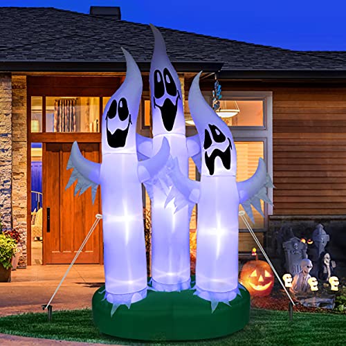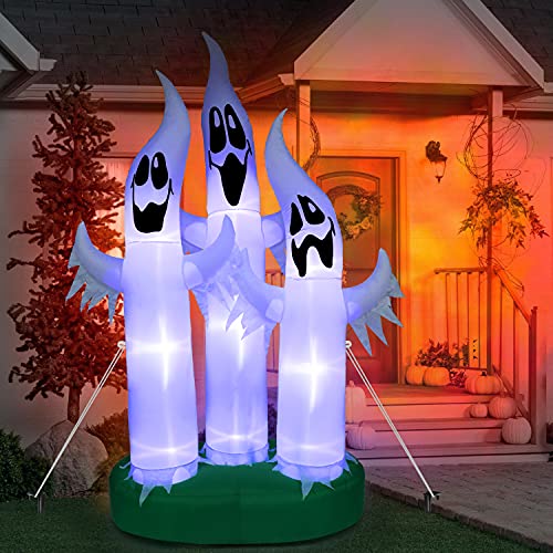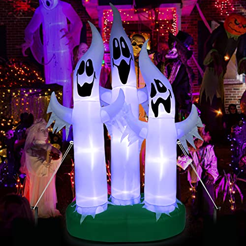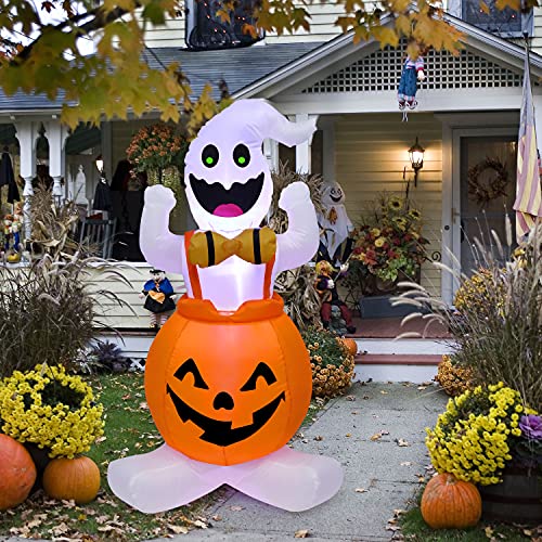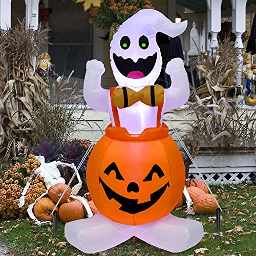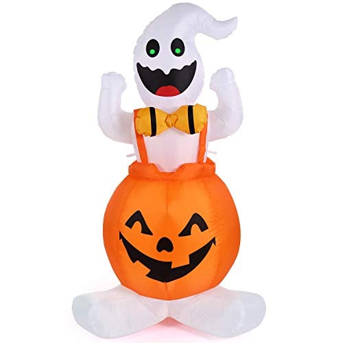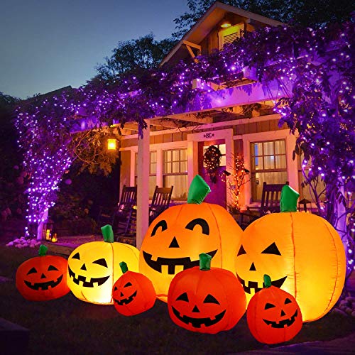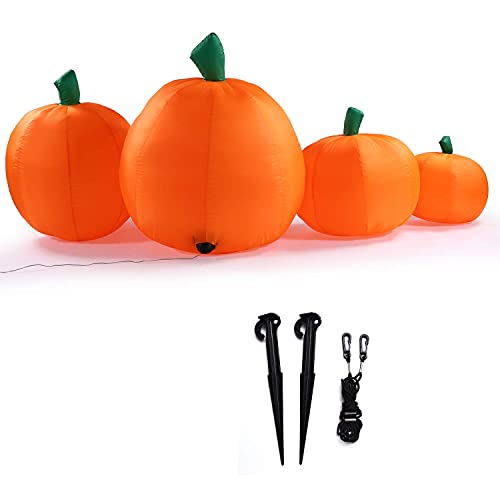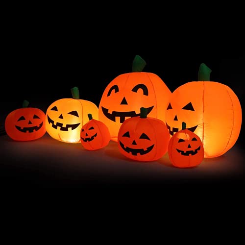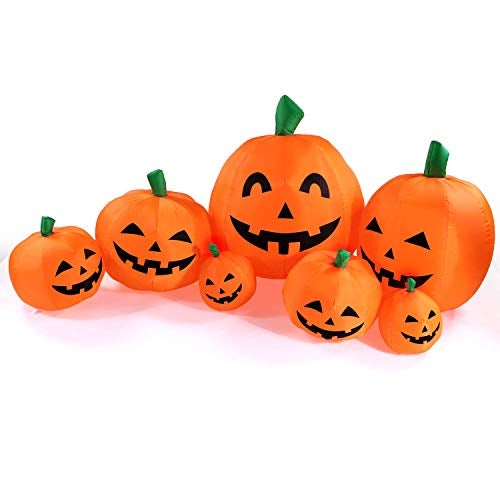 - Halloween Inflatable Pumpkin. This Inflatable Pumpkin with bright LED Lights is 7 ft wide, from left to the right and will be an ideal host to welcome your Halloween guests. It is made up of 7 cute pumpkins, help to create Halloween atmosphere also not too scary for kids.