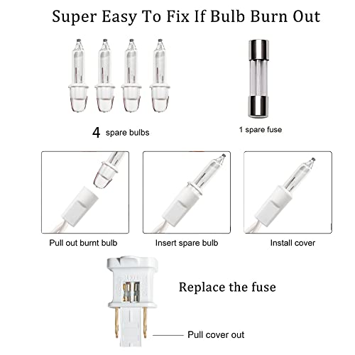 - End to End Connectable: Each string light designed with male and female end connector. Connect up to 4 sets of Christmas icicle string lights. Can be expanded to 35 feet long to fit the lighting and festival atmosphere needs of different sizes of occasions. (Max 400 bulbs)