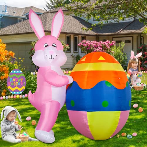 8 FT Height Easter Inflatable Outdoor Decorations Bunny with Egg