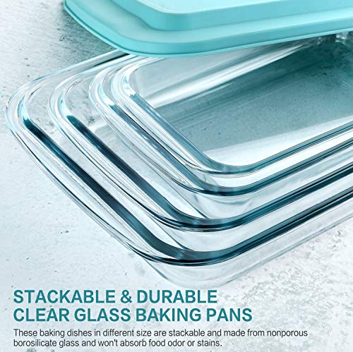- TIGHT FITTING LIDS: 8-piece baking dishes set includes 4 baking dishes and 4 gray BPA-free plastic tight fitting lids, which are designed to keep your food fresher longer. Made with a special non-slip design, you can stack these 4 containers with lids on top of each other in your fridge or freezer for space saving storage. Also they are sloshproof to prevent spilling while storing or on the go. The ideal set for baking, serving and storing food.
