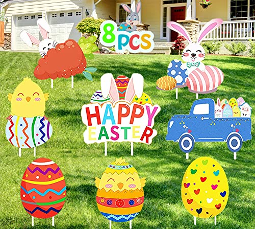 - 【Packaging Includes】8pc and 16 stakes Easter Yard Signs.Using them for your yard decor or lawn decor is the best choice to welcom the coming spring easter and everyone will be so surprised with these amazing decorations.