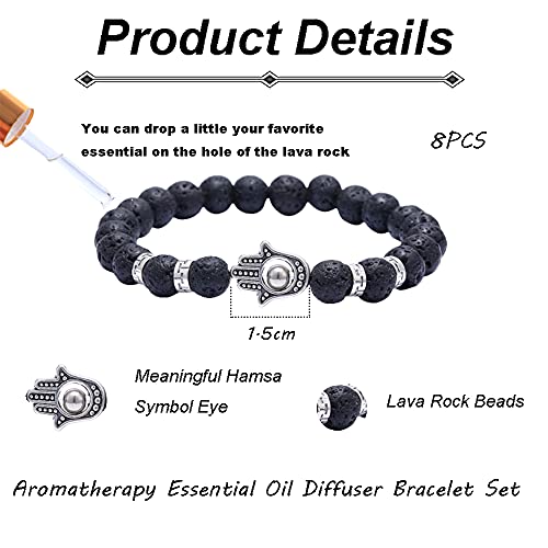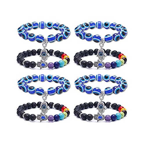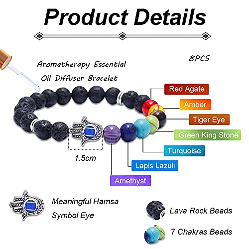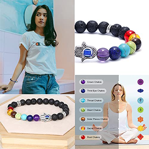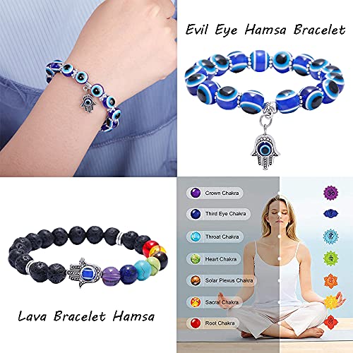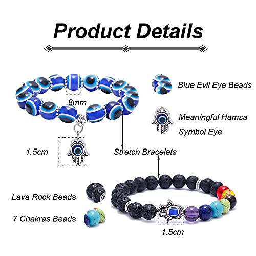 - 【Material】Evil eye bracelet made of blue evil eye beads and hamsa pendant;7 chakra bracelet made of lava stone beads, chakra beads and hamsa pendant; lava rock bracelet made of lava rock beads and hamsa pendant.