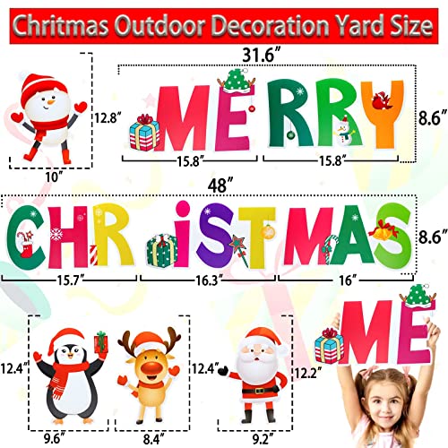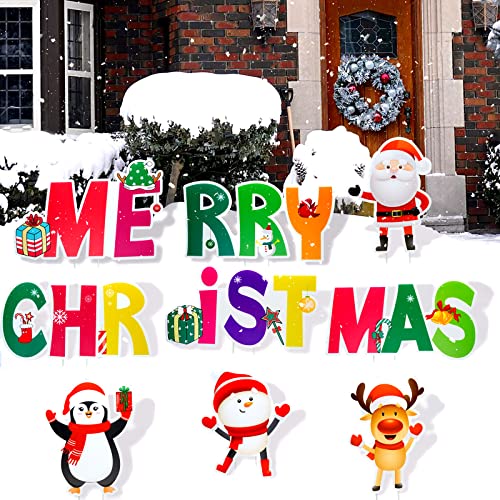- 💝Valuable Characters Set -- Combination of "MERRY" signs are 31.6x8.6", "CHRISTMAS" sign are 48x8.6". Each animal sign averages size: 12.5"x9.5". Eye-catching for better decorating and festive effects. There are 9 Christmas themed signs and 18 plastic sticks. Super convenient to install with the stakes attached.