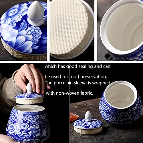 - š Excellent design šļ¼ The appearance of porcelain shows blue and white pattern, rich flower pattern, Royal decoration, noble and elegant. The porcelain cover is wrapped with non-woven fabric, which has good sealing property and can be used for food preservation.