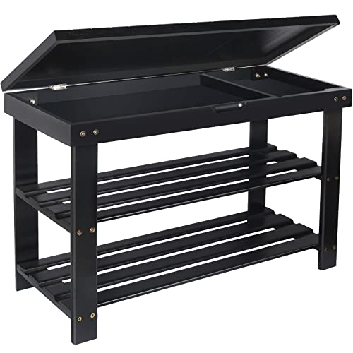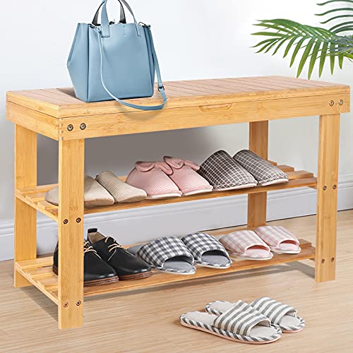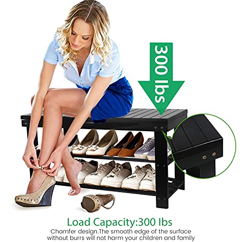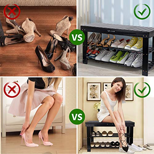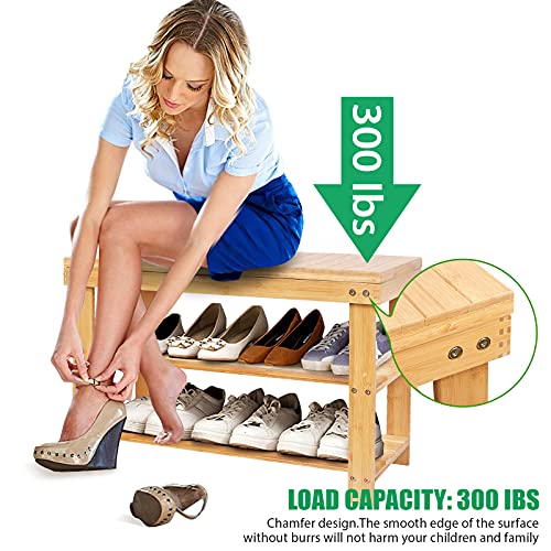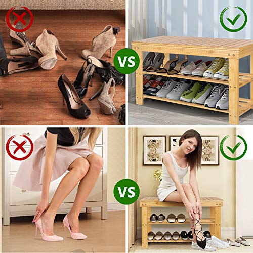 - STURDY & DURABLE SHOE RACK BENCH:Made of 100% natural bamboo, renewable and sustainable material. Children or elderly with reduced mobility can sit on the storage bench to change shoes without worrying about them being wobbly or slippery,the bearing weight is up to 300 lbs.