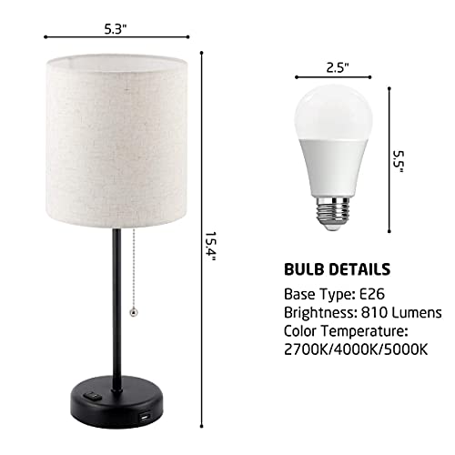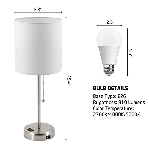- ✔️LED BULBS INCLUDED: This USB bedside table lamp comes with E26 bulbs 8w lumens up to 810, and save up to 90% in energy use.