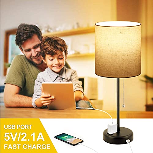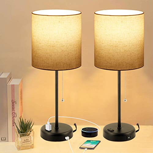 Bedside Table Lamps for Bedroom Set of 2 w/ USB Charging Port & AC Outlet 2 Blubs Included