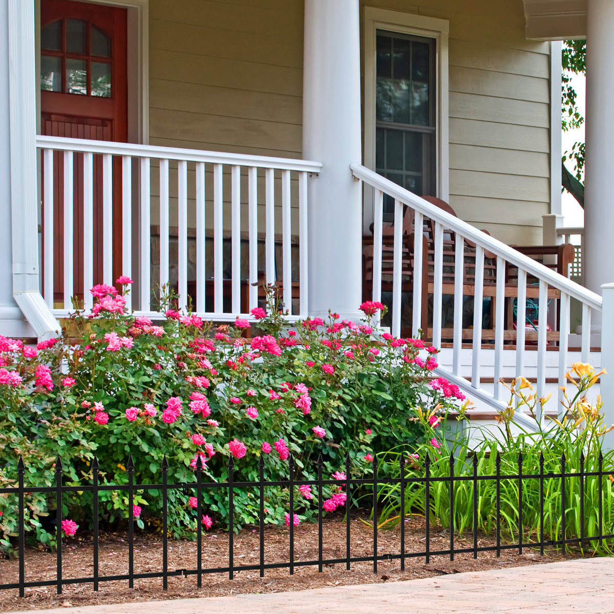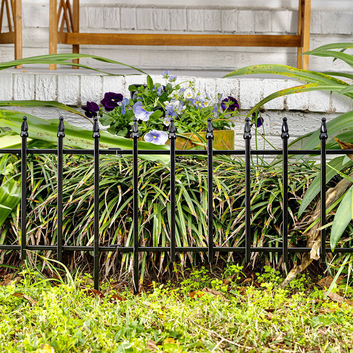 22 in. W x 18 in. H Expert Gardener Empire Powder Coated Steel Garden Border is constructed of a powder-coated steel-a finish more durable than paint. The powder-coating helps protect against weather elements and aids in the prevention of rust and corrosion. The light weight design features feet on the bottom that press into the ground for easy installation. The simple connecting system allows you to connect multiple borders by inserting feet into side rings. Multiple borders can be used to accommodate straight lines, angles and curves to create a garden design all of your own. *- Each border panel measures 22 in. W x 18 in. H *- Black powder-coated finish helps prevent rusting and stands the test of time and weather *- Classic wrought iron look *- Quick connecting system for fast and easy installation *- Spiked feet press easily into ground *- Use multiple borders to accommodate straight lines, angles and curves *- Ideal for flower beds, gardens, and walkways *- Each border is sold separately so you can customize your border length to meet your specific needs *- Expert Gardener brand