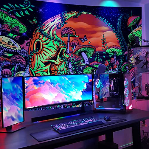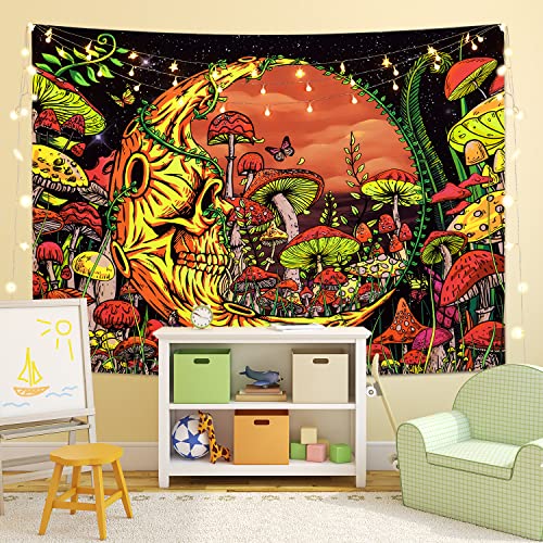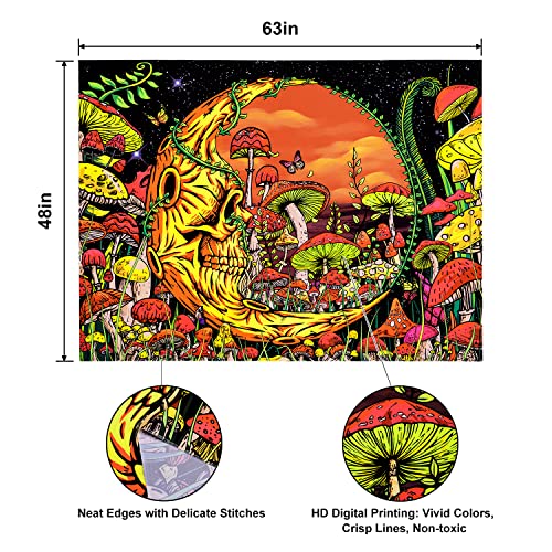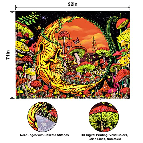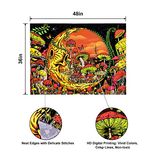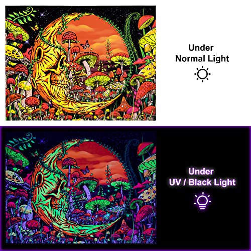 - AMAZING DESIGN: The Pocass blacklight mushroom tapestry can glow under blacklight or UV light in the dark, creating a different visual experience than normal light. It just looks like the mushroomand moon glows in black light, and create a magic and funny atmosphere for your bedroom. (Black light or UV light is not included!)