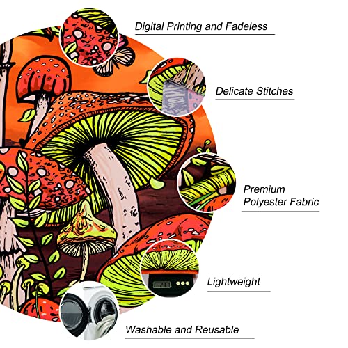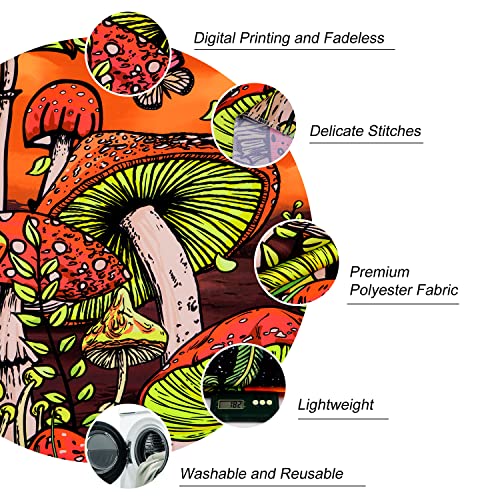- EASY TO CARE: The UV reactive mushroom tapestry can be hand-washed or machine-washed, washed and dried in the shade. We recommend hand washing because it won't wrinkle them. Hang to dry, iron at low temperatures, please don't expose to the sun, do not bleach.