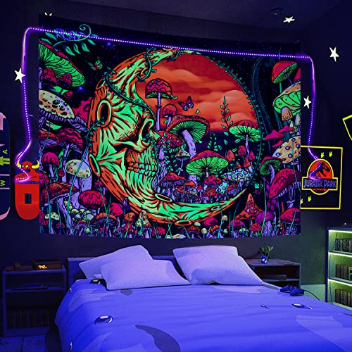 - MULTI-FUNCTION: If you have a blank wall of your home, and are looking for something to decorate, this blacklight tapestry definitely will be a great choice. The moon skeleton tapestry can be used as a wall hanging for wall, ceiling, bedroom, or other background, meanwhile, it is a perfect gift for all occasions.