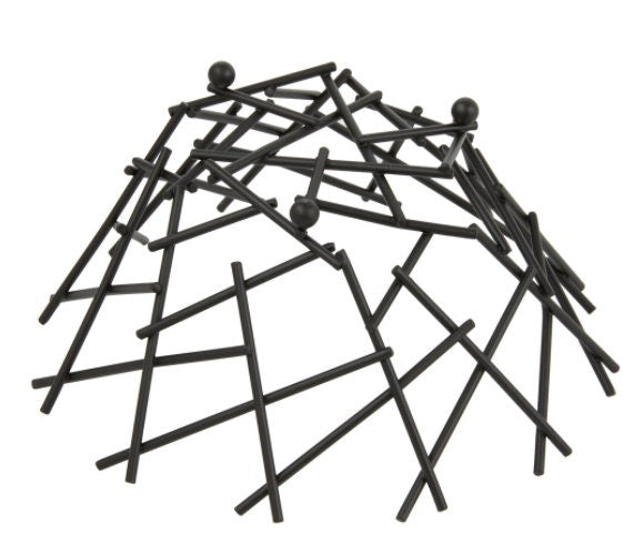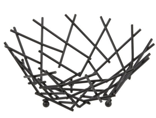 • Write a new definition for 'originality' in your restaurant, cafe, or catered event with this Metalcraft 8"round black thatch basket! Constructed of interlocking "branches", the irregular pattern of this black thatch basket provides an exceptional viewing area for breads and fruit. Increase impulse sales during checkout by displaying small items like candy or baked goods by your register.