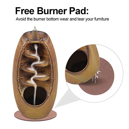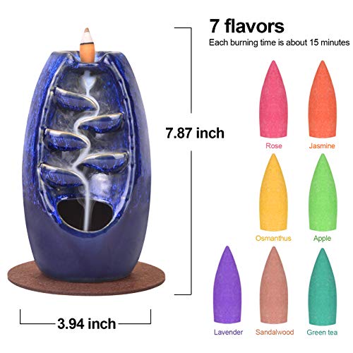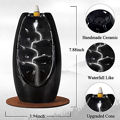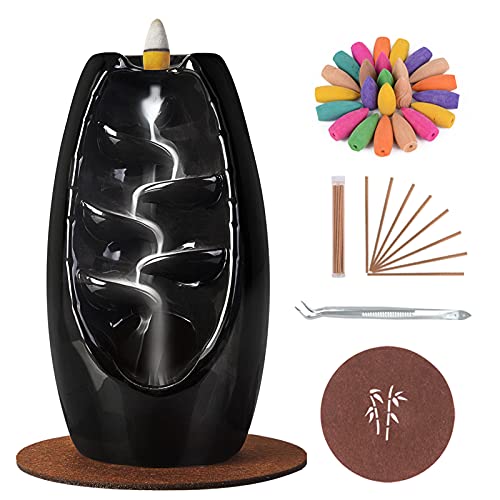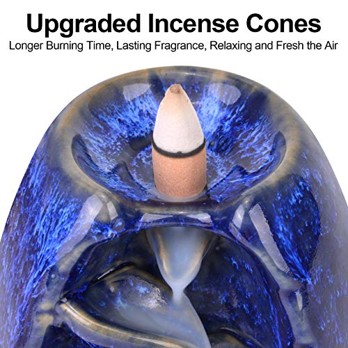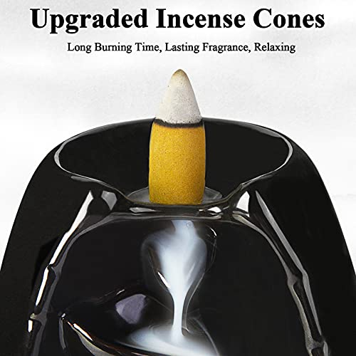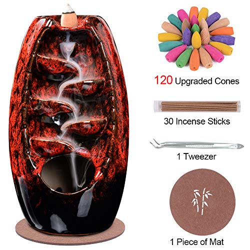 Ceramic Backflow Incense Holder Waterfall Incense Burner Bundle includes 120 Backflow Incense Cones + 30 Incense Sticks, Aromatherapy Home Decor