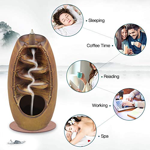 - ➤ Function & Widely Use: Use the waterfall Incense Burner together with incense cone, helps to purify the air, meditate and relax and improve sleep quality. The cones holder can be widely used in living room, bedroom, study, office, meditation room, yoga room, hotel,e tc