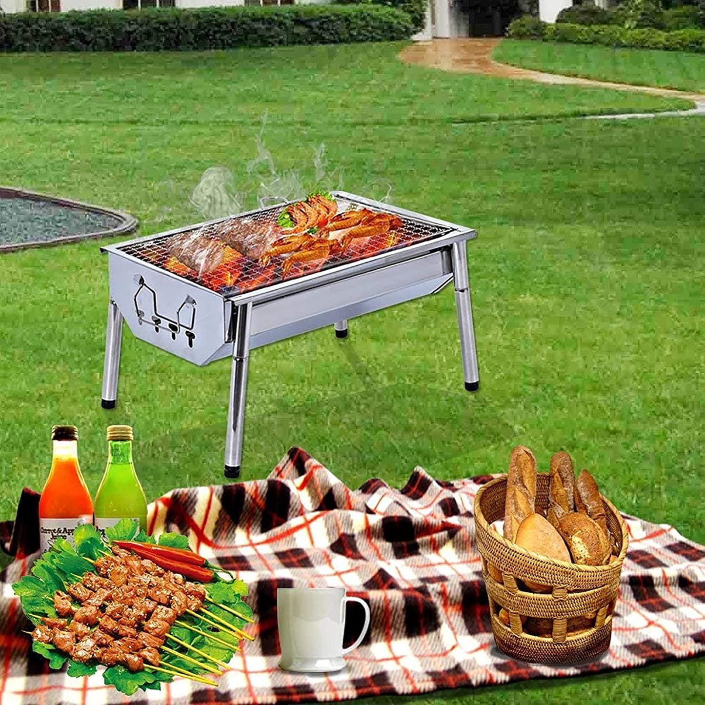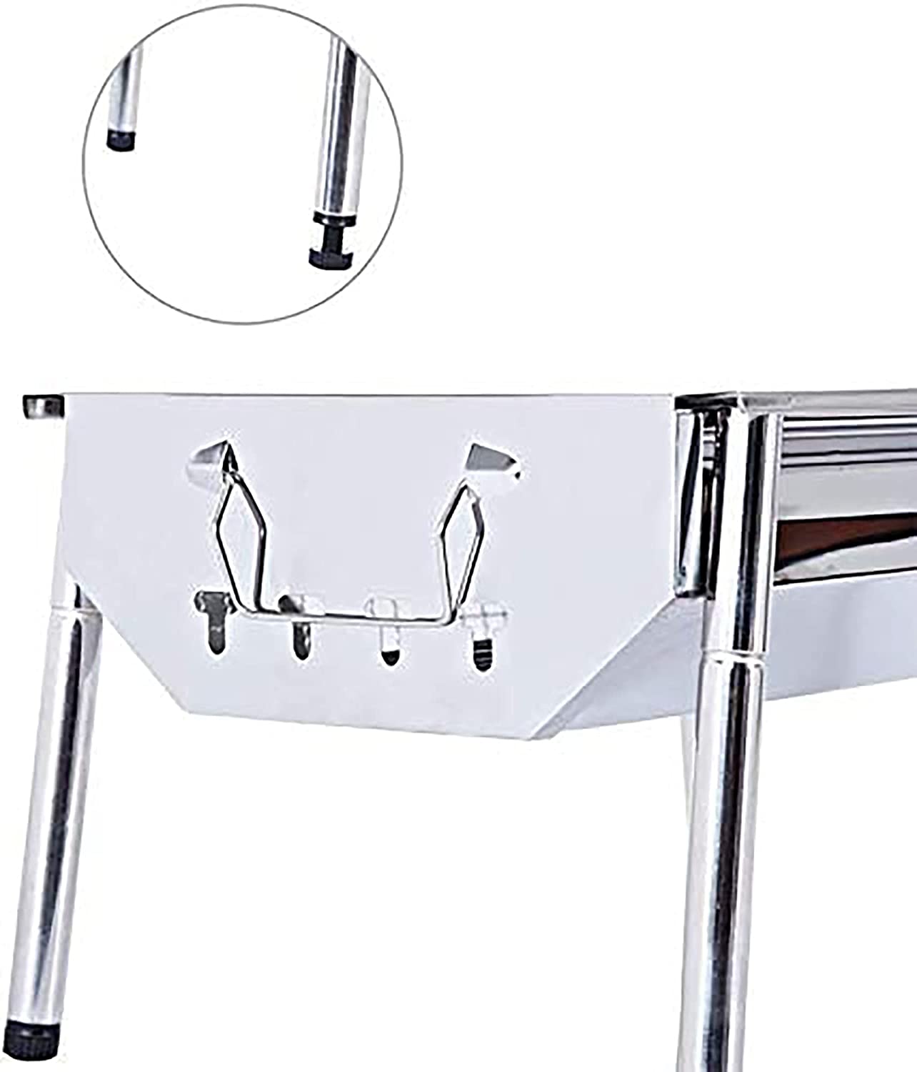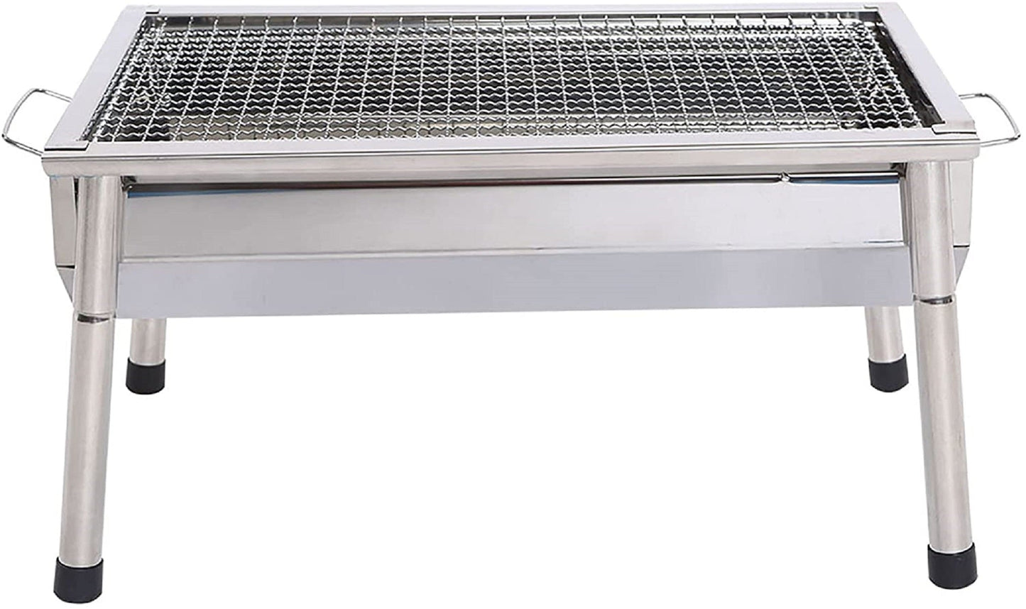 Our BBQ grill set is made with top quality stainless steel and well polish finished, won’t rust and won’t crack like wood handles do, easy to clean and long lasting, which will keep your bbq grill charcoal accessories looking great season after season. Stainless Steel barbecue charcoal grill makes it folded and portable, yet maintain its functionality. Also called a Portable Grill, this stainless steel grill is perfect for camping, backpacking, picnics, parties, trailers, parks, etc. Start a joyful BBQ on the go and enjoy the delicious Shish Kebab, Lamb Kebab, Japanese Yakitori, Malaysian Satay, etc. Bring this outdoor grills & smokers to the park or use it as Camping Grill. Double air vents and ash catcher Double air vents on both ends for temperature control and create air circulation throughout the charcoal grill, which speeds up the burning. Built-in grid charcoal frame ash catcher provides hassle-free ash clean up. Air Ventilation Features easy to adjust vent that controls heat intensity and create even air circulation throughout the barbecue grill, bringing a better cooking taste to your favorite meals. Convenient handles Convenient handles for portability and grilling on the go - perfect for camping. The BBQ grill has four detachable legs, Detachable legs design made for easy carry and storage . Perfect for camping, backpacking, picnics, tailgate parties, camping, trailers, parks, and grilling in small spaces. Our Charcoal Grill reference many sellers' critical reviews and buyers' good points. Some of the places where we went camping were uneven, and we had to adjust the height of the barbecue leg. Our company's designers set up screw button with adjustable height. The legs of the barbeque grill can be folded so it can be so convenient if you want a perfect BBQ camping trip. Whenever and wherever, it's up to you. Description: Material: Stainless Steel Color: Sliver Item Dimensions LxWxH: 15.9 x 11 x 8.8 inches Finish Type: Stainless Steel