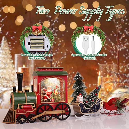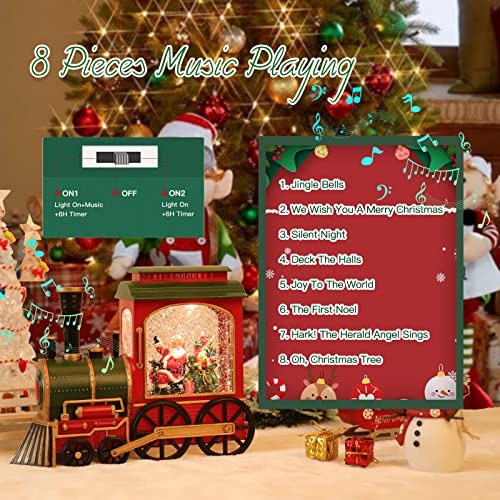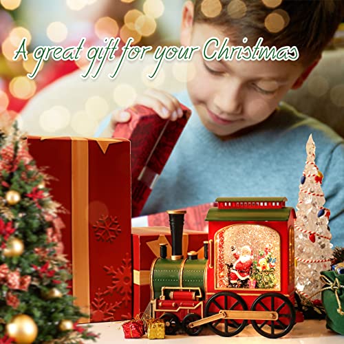 - CHRISTMAS DESIGN: Train table piece shaped design Christmas musical snow globes Christmas with music with Timer. This snow globe Christmas snow globes with music is manufactured with premium material for durable and long- lasting use. Christmas lantern snow globe for Christmas is easy to use and install with long service life. battery operated snow globe lighted snow globe lantern creates festival atmosphere with the snowing scene and warm light.
