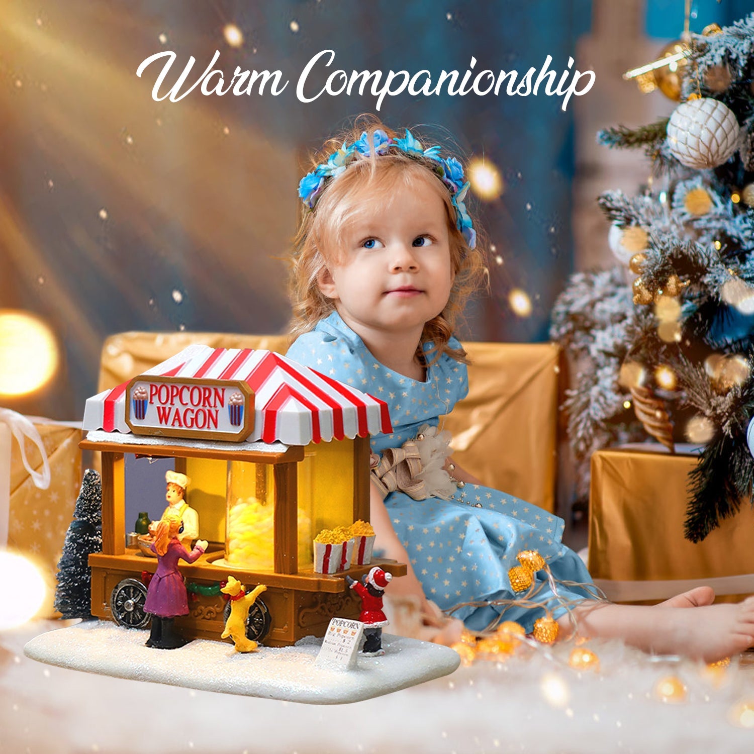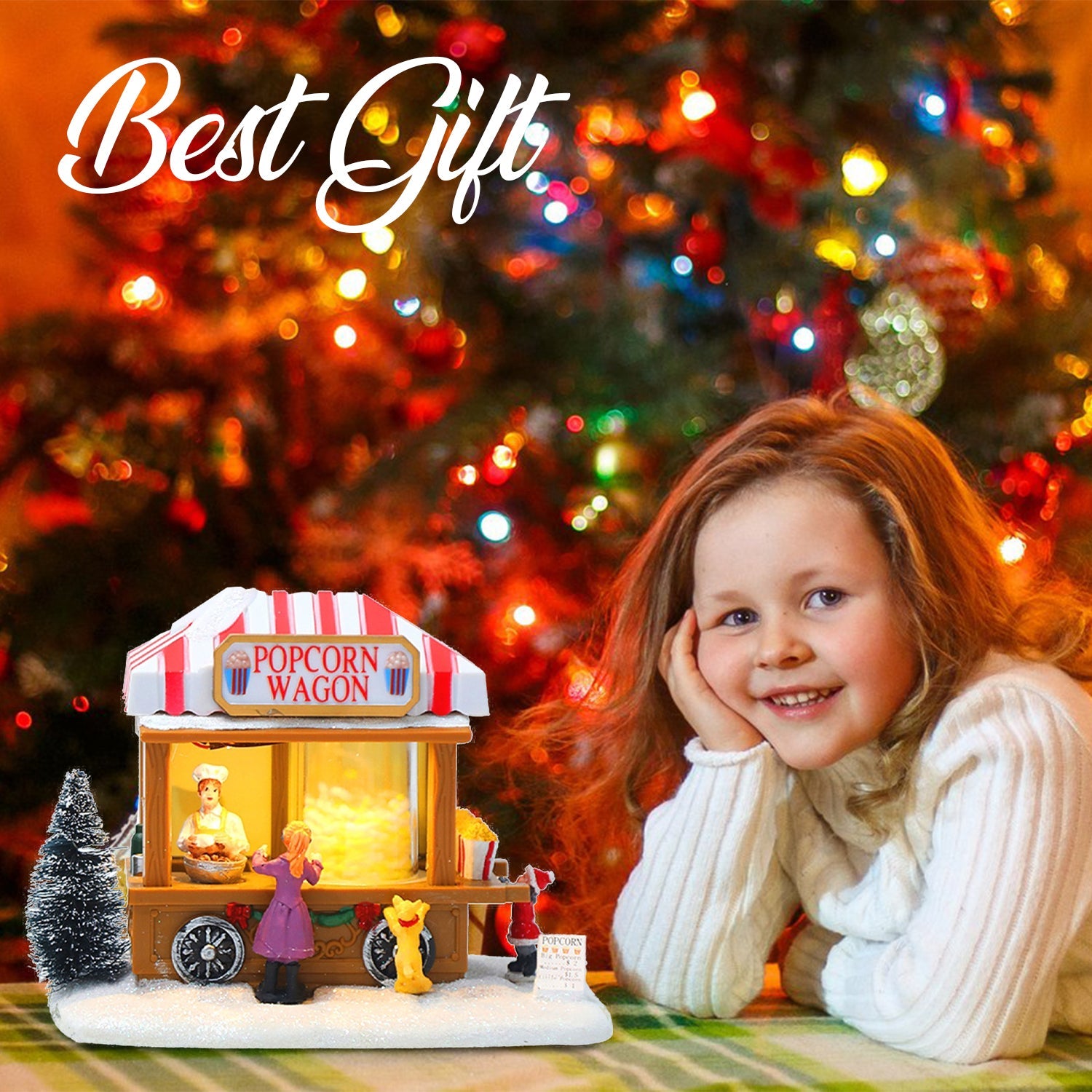 Themed Decor Enhance your Christmas decoration with this collectible building. You can place it anywhere you want and design your own Christmas village display indoor! Perfect Christmas Decoration Christmas Village is illuminated with LEDs. The colorful LED lights are beautiful and bright at night and very eye-catching as a holiday decoration. Perfect for house decoration, Christmas tree decoration. Right Christmas Gift High quality, warm, perfect holiday gift, the best Christmas decoration for children, family and friends, let them feel your strong love on Christmas and Christmas Eve! Suitable for Anywhere Christmas house decorations fit any corner of your home, entryway table, fireplace mantel, or as a dining table centerpiece, creating the perfect tabletop decoration for the holidays. Reasons for Choosing BELVITA Exquisite designs, exclusively designed by designers and handcrafted by skilled craftsmen Durable material, the whole Christmas village is made of durable resin, which can let you use it for 5-10 years Warm lights and full of festive music, make your Christmas more fun and make your family happy Excellent after-sales service,any questions, we will give you an answer in the shortest possible time *- 100% RESIN: This Animated Christmas Village Popcorn House with durable resin materials and will decorate your home for seasons to come! Enhance your Christmas Decorations with this amazing Lighted Christmas House figure. *- HAND-CRAFTED: We are proud to say that this Pre Lit Christmas Village is meticulously hand-crafted and intricately hand-painted from skilled artisans. *- CHRISTMAS VILLAGE : Christmas Village popcorn house, a girl with her dog waiting for hot popcorn on Christmas Eve, the store's lights warmly illuminate them and will be the finishing touch to your Christmas Village collection! *- PRODUCT HIGHLIGHTS : Christmas Village collection has warm LED lights and 8 Christmas music tracks, and there are two modes to choose from, you can turn on the music and lights together for a more intense Christmas atmosphere, or you can just turn on the lights and turn off the music so you won't disturb your family in the middle of the night. *- PERFECT CHRISTMAS GIFT:This exquisite Christmas village will be the perfect gift, collectibles, table decorations, and it will definitely add more joyful atmosphere to Christmas. As a Christmas gift to family, friends or kids, it will definitely surprise them *- WORTH HAVING: Included with 1* popcorn house requires 3*AA batteries(not included), comes packaged in protective foam inside.