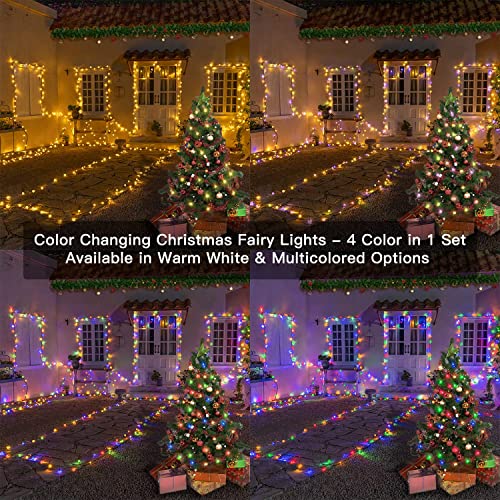 - Color Changing Fairy Lights- Get Multicolored and Warm White solar lights at the same time! gives a solution for those who hesitate to buy warm white or multicolored Christmas lights - GET THEM BOTH! Our Christmas fairy lights can transform 4 colors, including warm white and multicolored, which meets your family's need for meticulously warm white or cheerful twinkles.