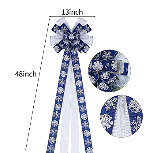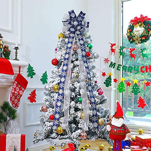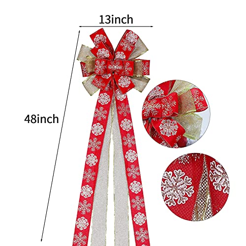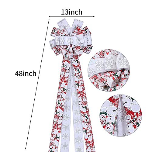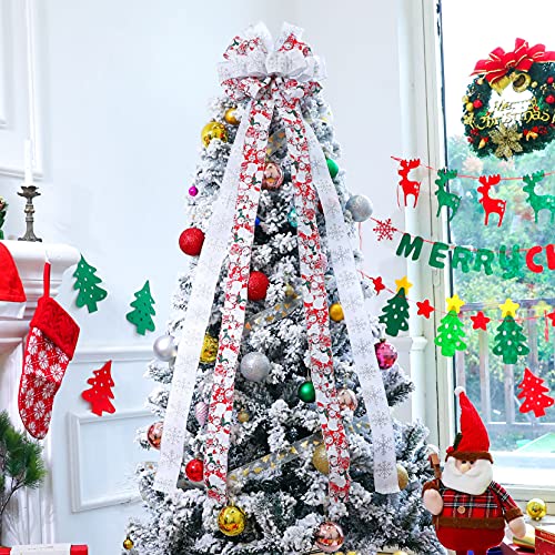 - 🎅EXQUISITE DESIGN:Christmas tree topper have a little glitter on the surface, very cute and delicate, with smart ribbons,holiday decorative bow long ribbon tails can be cut to your needed length.The exquisite structure and handcraft make it looks unique and distinctive.