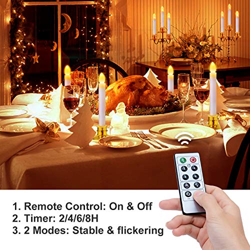 - REMOTE CONTROL & TIMER: 10pcs window candle lights (8.5''), with 2 AAA battery operated( Not included). Unique LED flameless candle, portable & energy efficient. 10 feet remote control distance, easy to operate. Timer keys start 2~8h cycle, special window lights with stable & flickering lighting modes, changed candle brightness, choose your favourite by desires.