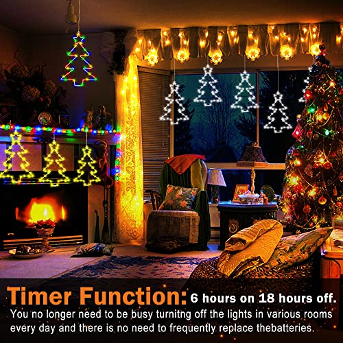 - 【Dimmable & Timer Function】Christmas window decoration lights have 100%-75%-50%-25% 4 levels of adjustable brightness. Depending on the overall decoration, you can choose bright or soft light. Intimate timer function: Open the timer function, 6 hours on 18 hours off. You no longer need to be busy turning off or on the lights in various rooms every day, and there is no need to frequently replace the batteries.