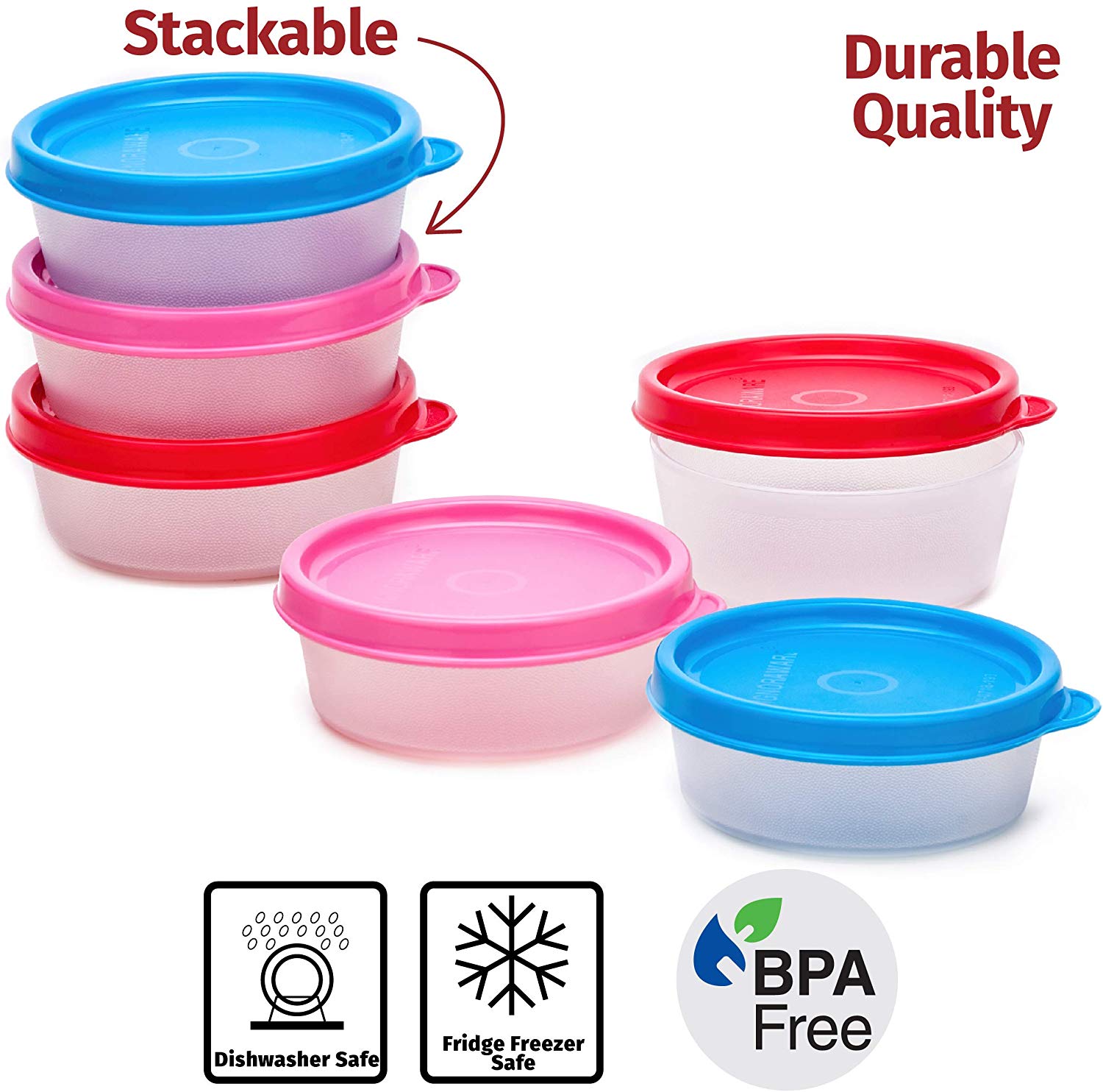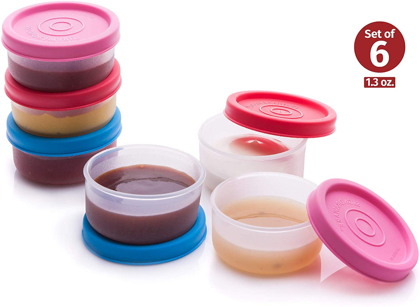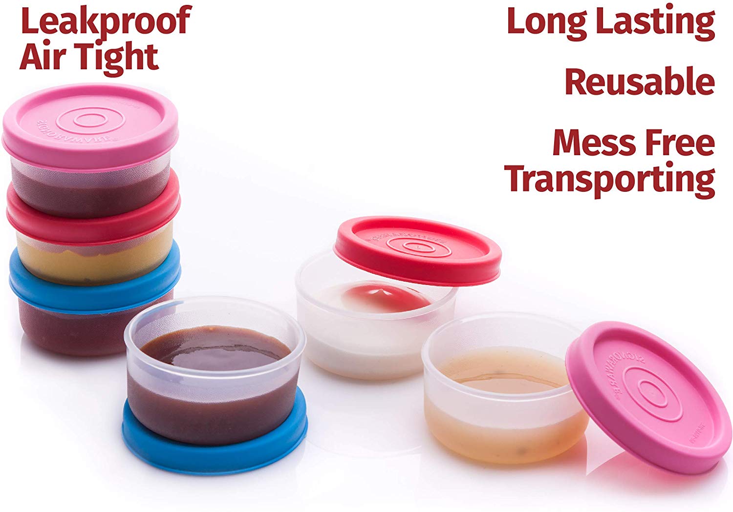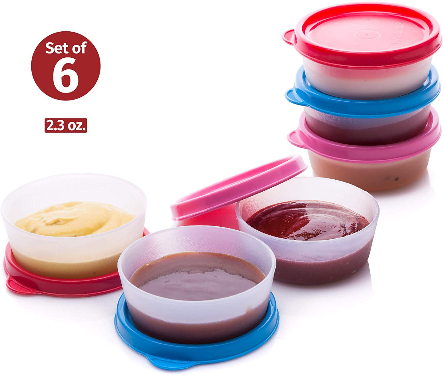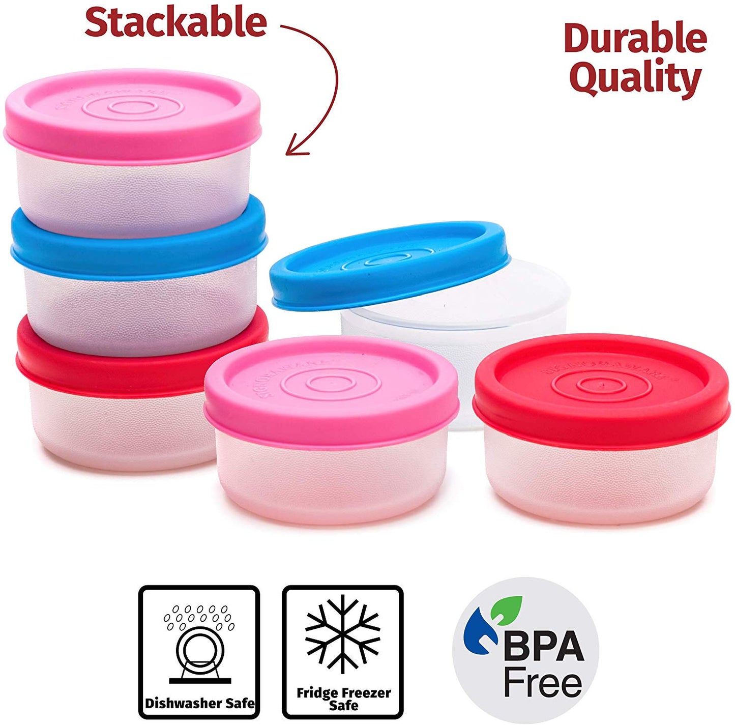 Set of 6 reusable plastic food storage containers Available in 2 varying shapes and sizes we’ve got your food storage system covered! These small plastic food containers are perfect for taking snacks, fruit and condiments on the go. Great for popping into your work bag or school lunchbox they’re so handy to keep hunger at bay when you’re on the go. If you’re prepping a picnic and need to take condiments then these are the perfect size to take along some ketchup, mustard or mayonnaise without having to take the whole jar along! Pet-owners love our transparent food containers to take treats on dog walks or food on the go when traveling and your pooch is due a meal. Manufactured with Food Grade safe materials Made from durable, BPA free plastic which is strong and long lasting, they are perfectly safe for storing and freezing food. Our airtight containers keep food fresh and are so versatile as they are Dishwasher, Microwave, Fridge and Freezer safe too. Various sizes available You will receive 6 food clear plastic containers when purchasing, with 3 colors of lids for organization (2 of each color) Sizes available are: Nano Round 1.3 oz., Mini Mate 2.3 oz., Please ensure you select the correct size when purchasing. BUY NOW and add this set of 6 reusable plastic food storage containers to your kitchen essentials! *- REUSABLE PLASTIC FOOD STORAGE CONTAINERS – multi-purpose, reusable food storage containers for work, travel, picnics and storing or freezing food. Stackable food containers that are airtight and leakproof, an essential for every home *- MULTI-PURPOSE FOOD STORAGE TUBS – transparent plastic food containers are an excellent way to store food as you can see straightaway what each tub contains. Use for condiments, snacks on the go, food preparation, fruit portions for lunch boxes, baby food portions or even to store dog food or treats when on the road and your pup needs to be fed *- VARIOUS SIZES AVAILABLE – each set contains 6 plastic food containers with lids in 3 colors (2 lids in each color). Please select the size you require when making your purchase. Sizes available are: Nano Round 1.3 oz., Mini Mate 2.3 oz., *- MADE FROM FOOD GRADE SAFE MATERIALS – our plastic containers are totally safe for storing and freezing food. They are made from durable, BPA free plastic which is strong and long lasting. These food storage containers are so versatile as they are Dishwasher, Microwave, Fridge and Freezer safe too *- GREAT GIFT FOR HOUSEWARMINGS OR STORK PARTIES – a set of plastic food tubs is ideal for a new mom to use as baby food containers or snack pots. Friends setting up a new home will appreciate these as a gift too as they’re an absolute essential in every kitchen!