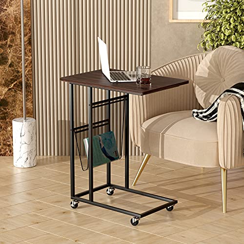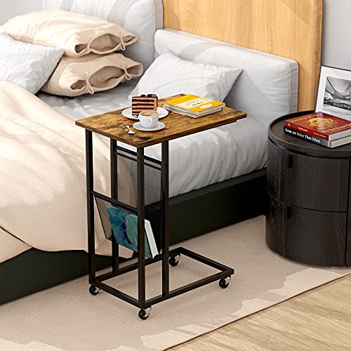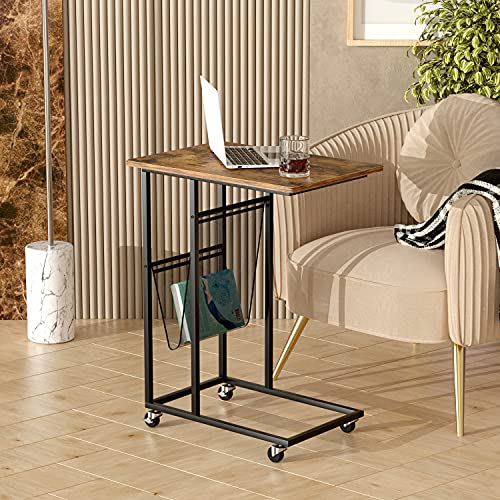 Couch Side Table - Industrial End Table C Shaped with Side Pocket