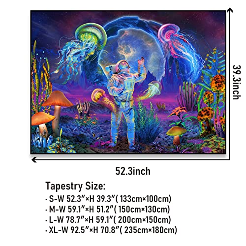 - High Quality Material- This Blacklight Astronaut Jellyfish tapestry adopts advanced HD print with it's vivid colors, crisp lines. Made of premium quality polyester fiber. Lightweight, soft, durable, smooth and easy to care for.