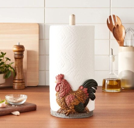 Farm Rooster Paper Towel Holder, Rustic Country Kitchen Decor Accessories, Home Decoration, Christmas Gifts for Mom, Grandma, 12" High