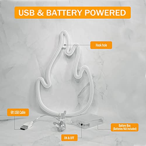 - đ„ăUSB/Battery Operationă: The flame shaped neon sign light comes with 3xAA battery box (3xAA battery NOT included) and USB cable. You can either use the battery pack or plug it to USB port, power bank, PC etc. You can hang it on the wall or put it on the table at will to create a stylish bar or game room.