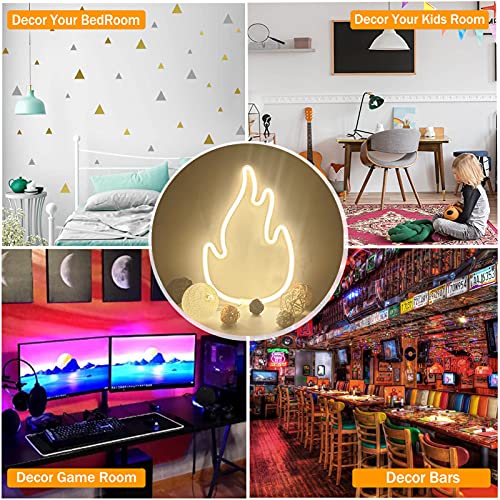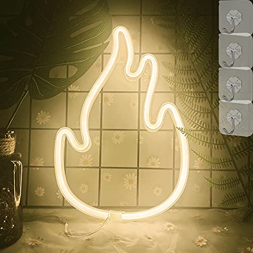 - đ„ă4 Hooksă: Our room decor flame lights come with 4 hooks for ease of display on wall or just rest on mantle, table or dresser. The flame neon sign room decor will create a romantic atmosphere in your room, very suitable for your little princess and prince.